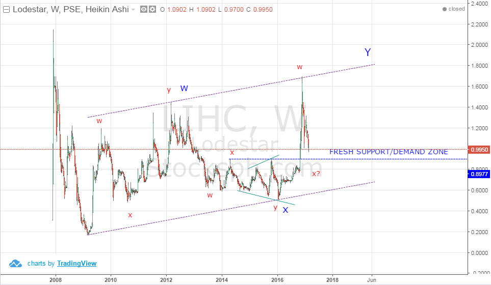 LIHC is forming a complex correction on the weekly chart. A possible double-three pattern. I am eyeing the 0.9000 as fresh area of support/demand for LIHC. If such area holds then its possible LIHC will form a new leg up towards the upper line of the channel (wave Y).